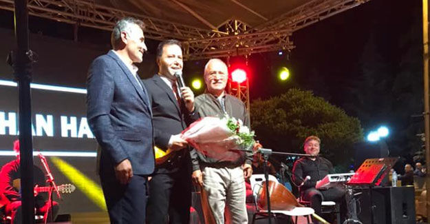 Arpalı Belediyesi’nin ilk belediye başkanı ve aynı zamanda Abdurrahman Polattimur’un babası olan Arif Polattimur ilerlemiş yaşına rağmen sahneye çıkarak, oğlunun elinden plaket aldı.
