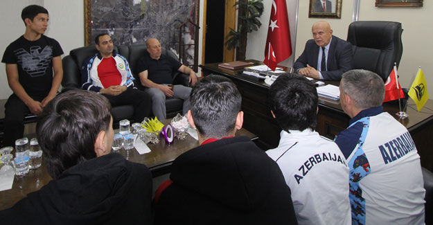 Ziyaretin sonunda kardeş ülke Azerbaycan’dan gelen boksörler Pekmezci’ye Azerbaycan Bayrağı takdim ettiler.