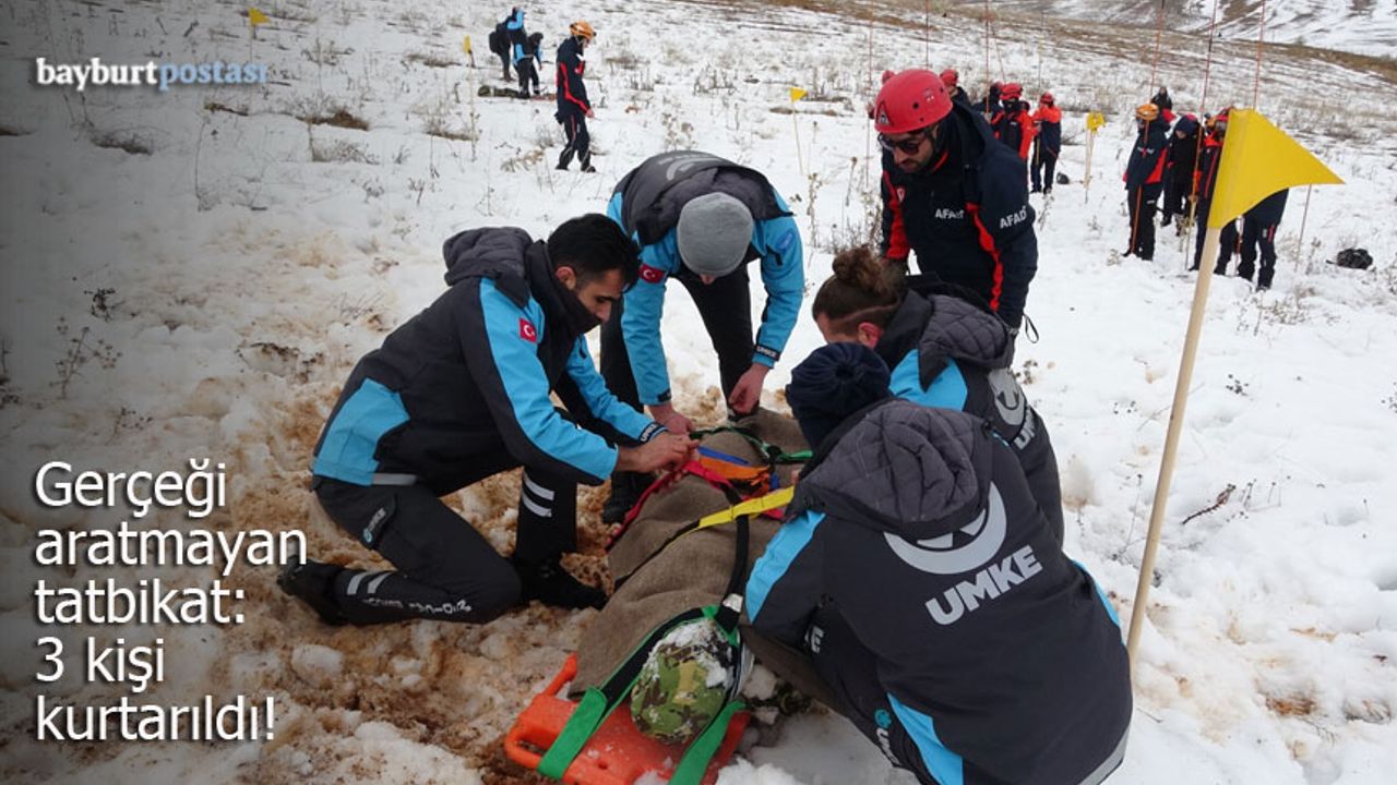 Bayburt Postası - Senaryo gereği çığ altında kalan vatandaşlar, 150 kişilik dev bir ekibin operasyonuyla kurtarıldı.