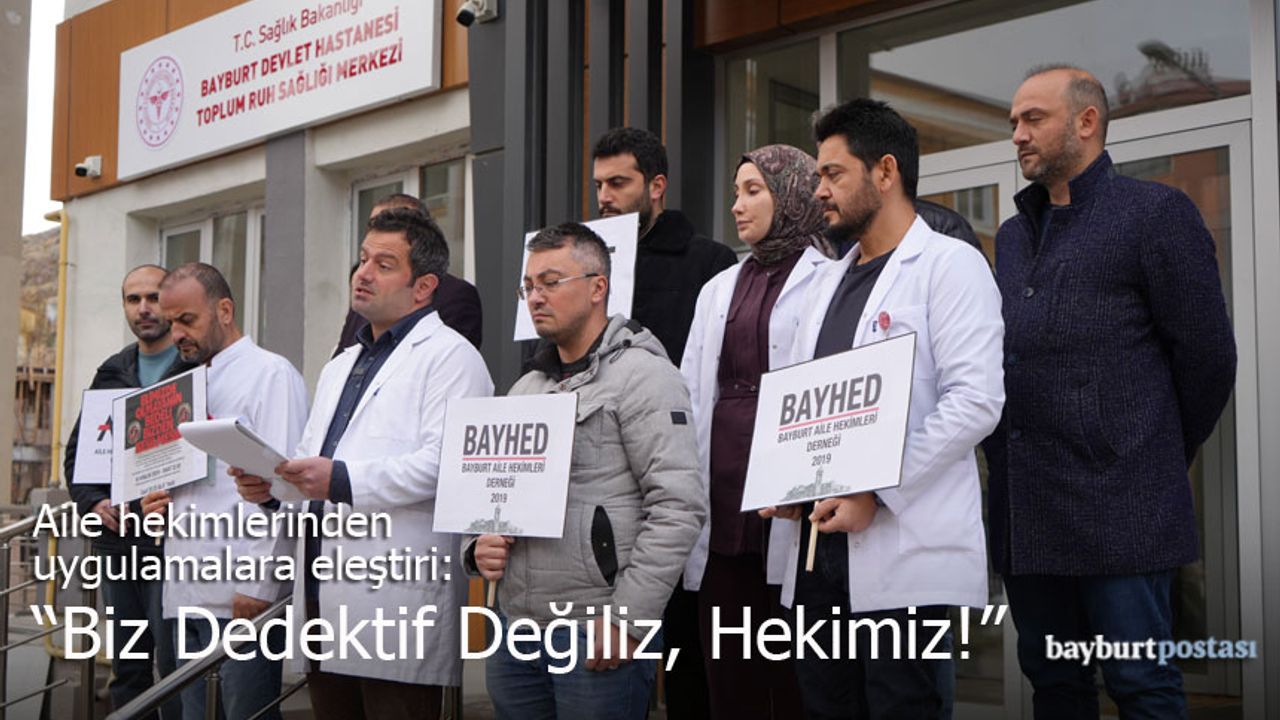 Bayburt Postası - 2 No'lu Aile Sağlığı Merkezi önünde toplanan hekimler, mevcut uygulamaların hem sağlık çalışanlarını hem de vatandaşların aldığı sağlık hizmetini olumsuz etkilediğini dile getirdi.
