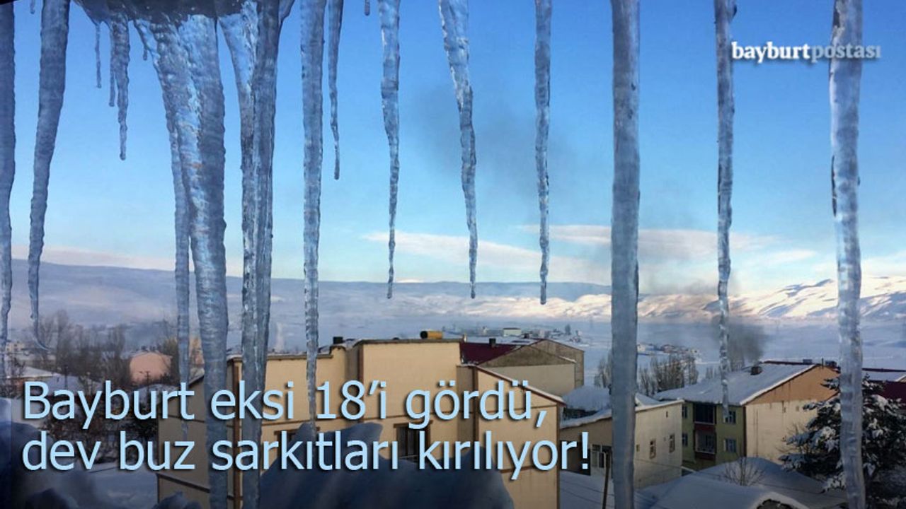 Dondurucu soğuklar binaların çatı saçaklarında boyları 60 santimetreyi bulan dev buz sarkıtlarının oluşmasına neden oldu. Vatandaşlar için tehlike arz eden bu durum üzerine Bayburt Belediyesi ekipleri teyakkuza geçti.