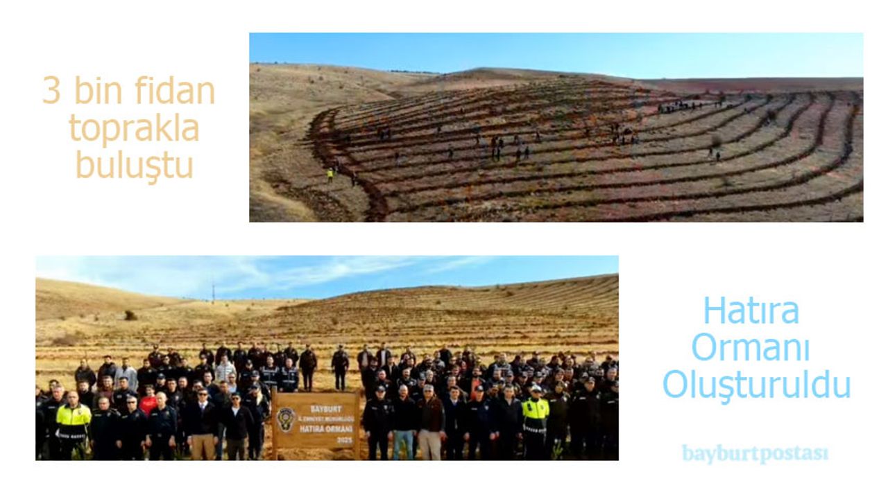 Bayburt Postası - Emniyet Müdürlüğü tarafından Gökpınar Köyü mevkiinde kendilerine ait bir “Hatıra Ormanı” oluşturuldu. Bu orman için tam 3 bin fidan toprakla buluşturuldu.