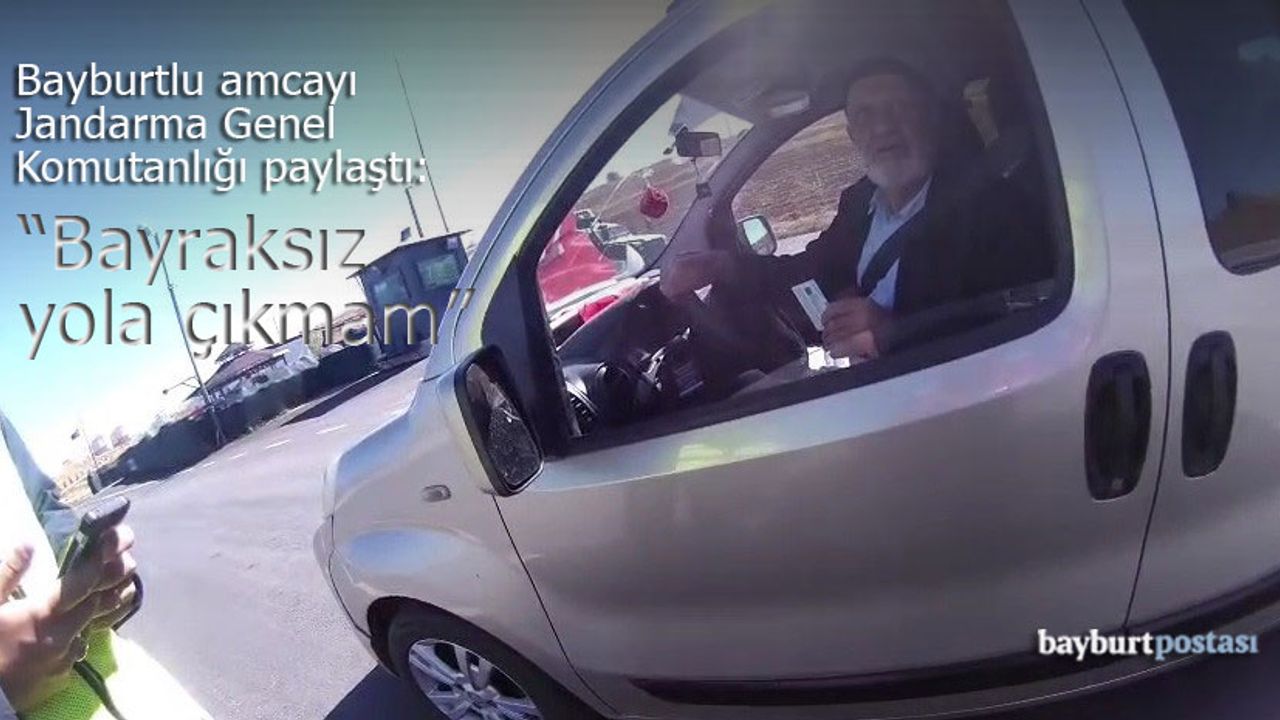 Bayburt Postası - Danişment Jandarma Yol Kontrol Uygulama Noktası'nda durdurulan Bayburtlu Hüseyin Kaya, Bayburt İl Jandarma Komutanlığında görevli bir personelle kısaca sohbet etti. Kimlik kontrolünün ardından sohbete devam eden Kaya, jandarma personeline nereli olduğunu sordu. Aslen Erzincanlı olan jandarma personeli, "Her yer bizim, bayrağın dalgalandığı her yer bizim" diyerek cevap verdi. Bu cevabın üzerine duygulanan Hüseyin Kaya, aracının içindeki ay yıldızlı Türk bayrağını işaret ederek, "Bu bayraksız arabaya binilmez" sözleriyle bayrağa olan derin bağlılığını dile getirdi. Araçla yola çıkarken dahi Türk bayrağını yanından ayırmayan Kaya’nın, "Ben bu bayraksız yola çıkmam" sözleri dinleyenlerin yüzünde tebessüm oluşturdu.