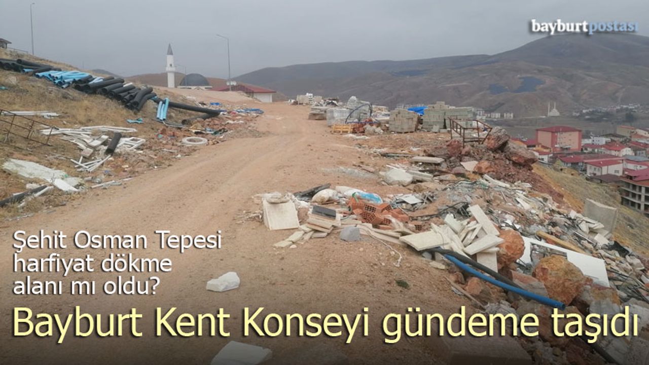 Bayburt Postası - Kent Konseyi tarafından yapılan araştırma sonucunda, Bayburt Merkez İlçesi Şingah Mahallesi'nde bulunan ve türkülere, şiirlere konu olmuş Şehit Osman Dağı'nda yer alan mezarlık ve otopark alanına hafriyat dökümü yapıldığı tespit edildi. Ayrıca, yakınlardaki TOKİ Emekli Konutları alanında da hafriyat ve inşaat malzemeleri bulunduğu gözlendi.