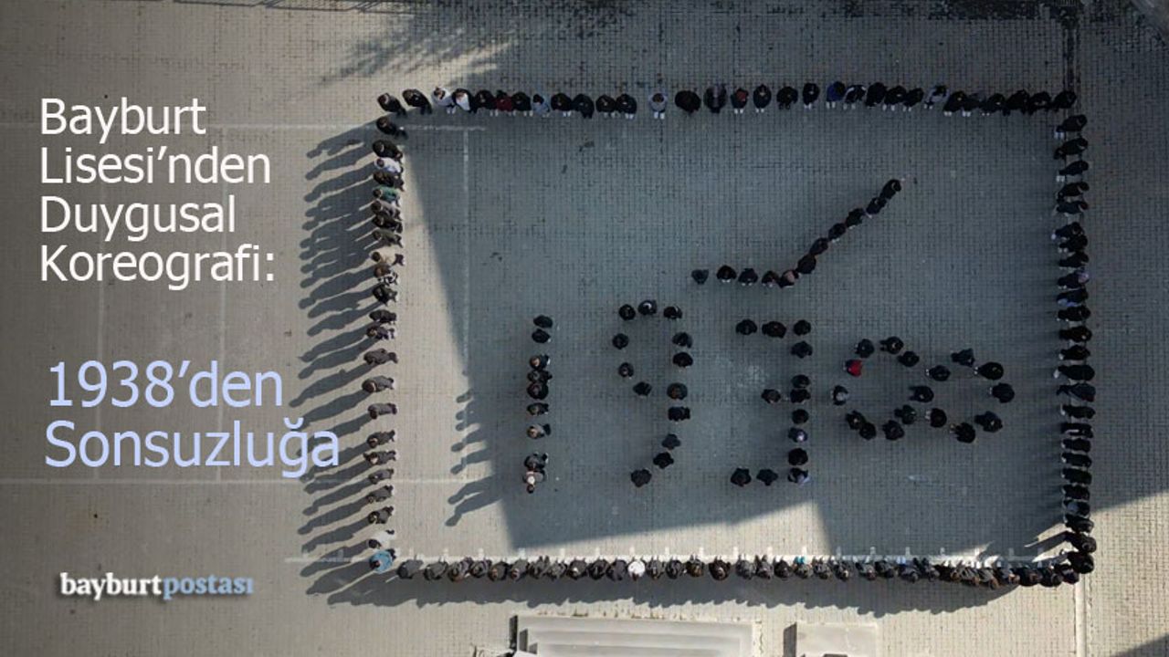 Bayburt Postası - Okul bahçesinde öğretmenlerinin rehberliğinde bir araya gelen öğrenciler, vefat yılı olan 1938 tarihini ve dikkat çekici bir yelkovan figürünü birlikte oluşturdular.