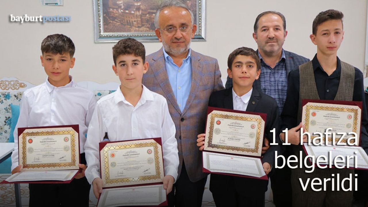 Bayburt Postası - Müftülük binasında gerçekleşen törende, 11 öğrenciye hafızlık belgesi takdim edildi. Törene katılan İl Müftüsü Bayram Danacı, başarılı hafızları tebrik etti.