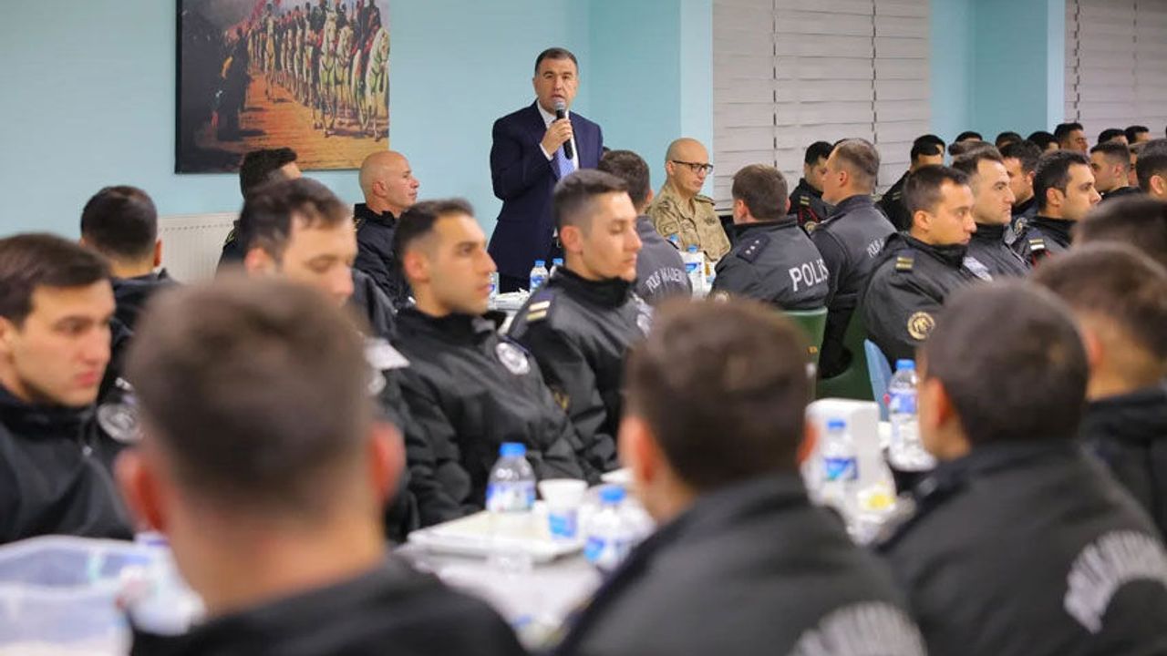 Bayburt Postası - Bayburt Valisi Mustafa Eldivan, POMEM yerleşkesindeki öğrenci yemekhanesinde düzenlenen iftar programına katıldı. İftar öncesi öğrencilerle bir süre sohbet eden Eldivan, ramazan ayının manevi atmosferinde gençlerle aynı sofrayı paylaşmaktan memnuniyet duyduğunu ifade etti. Polis adaylarının alacakları eğitimle vatana en iyi şekilde hizmet edeceklerine inandığını belirten Eldivan, "Sizler yarınlarımızın teminatı, milletimizin huzur ve güvenliği için görev alacak kahraman polislerimizsiniz. Alacağınız eğitimle vatanımıza en iyi şekilde hizmet edeceğinize yürekten inanıyorum. Hepinize eğitim hayatınızda başarılar diliyorum. Allah yar ve yardımcınız olsun" dedi.