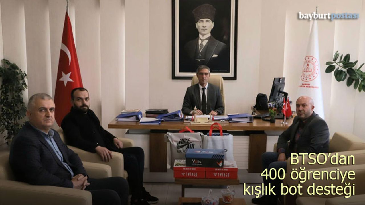 Bayburt Postası - BTSO tarafından temin edilen toplam 400 adet kışlık bot, öğrencilere ulaştırılmak üzere İl Millî Eğitim Müdürü Öner Faruk Kahraman'a teslim edildi.