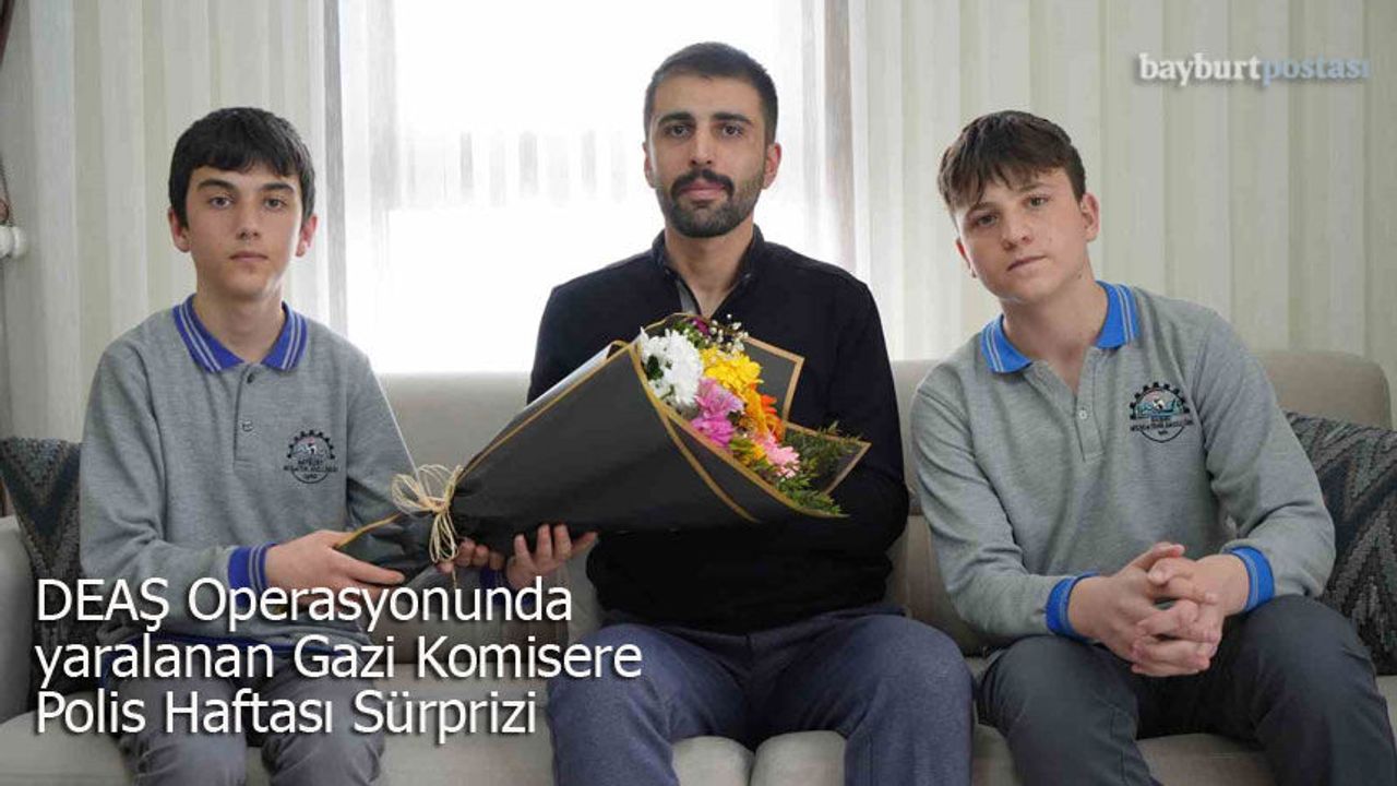Hain terör saldırısında kalbi, omzu ve bacağı başta olmak üzere vücudunun birçok yerinden yaralanan kahraman komiserin fizik tedavi süreci memleketi Bayburt’ta devam ediyor. Okul Müdürü Ensar Çeker, idareciler ve öğrencilerden oluşan heyet, Temel’e çiçek takdim ederek Polis Haftası’nı kutladı ve "geçmiş olsun" dileklerini iletti.