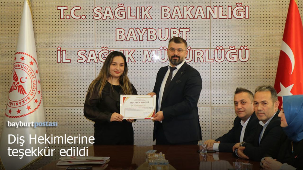 Bayburt Postası - Etkinliğe katılan Bayburt İl Sağlık Müdürü Uzm. Dr. Harun Sivlim, Ağız ve Diş Sağlığı Merkezi’nde görev yapan hekimlerle bir araya gelerek "22 Kasım Dünya Diş Hekimleri Günü"nü kutladı. Program kapsamında yapılan pasta kesiminin ardından, yıl boyunca sergiledikleri üstün performans ve özverili çalışmalarından dolayı başarılı diş hekimlerine teşekkür belgeleri takdim edildi.