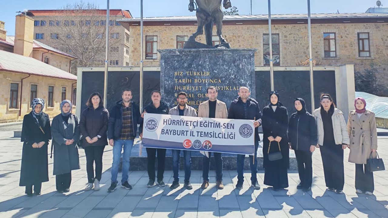 Bayburt Postası - Yaşanan şiddet olaylarına dikkat çekmek ve tepki göstermek amacıyla Bayburt Hürriyetçi Eğitim Sendikası üyeleri iş bırakma eylemi gerçekleştirdi. Sendika üyeleri, Bayburt Saray Bahçesi önünde toplanarak bir basın açıklaması düzenledi.