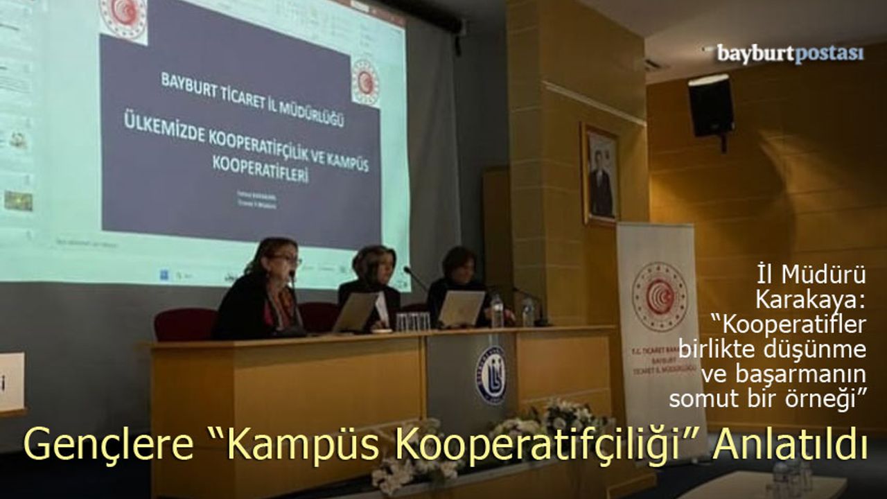 Bayburt Postası - Bu kapsamda Bayburt Ticaret İl Müdürlüğü ve Bayburt Üniversitesi İktisadi ve İdari Bilimler Fakültesi iş birliğiyle, üniversite öğrencilerine yönelik “Kadın ve Kampüs Kooperatifçiliği Perspektifinden Kooperatiflerin Gücü” konulu bir panel gerçekleştirildi.