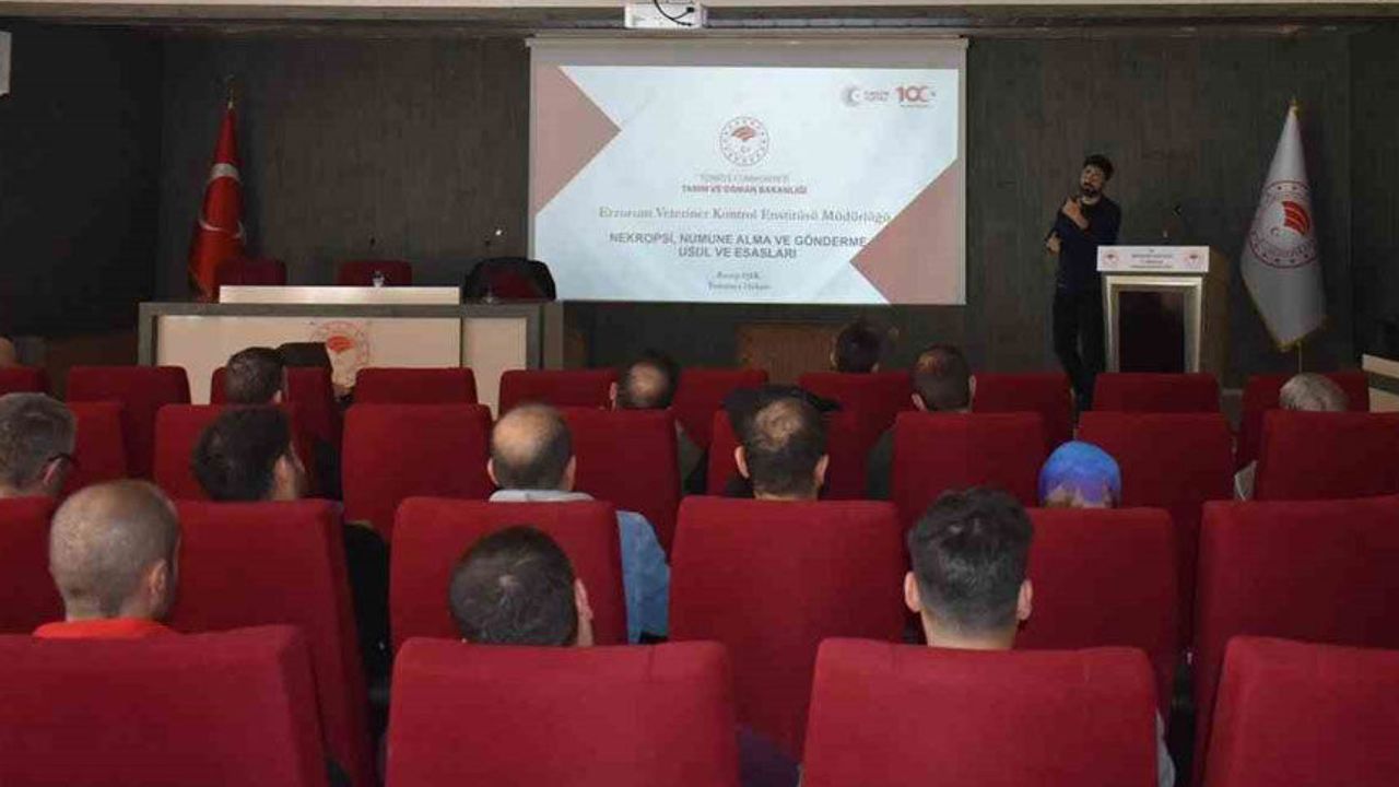 Erzurum Veteriner Kontrol Enstitüsü Müdürlüğü uzmanları tarafından verilen "Nekropsi Numune Alma ve Gönderme Usul ve Esasları" konulu eğitimde, sahada karşılaşılan vakalarda izlenecek bilimsel yöntemler aktarıldı. Eğitim kapsamında şu temel başlıklar üzerinde duruldu:
