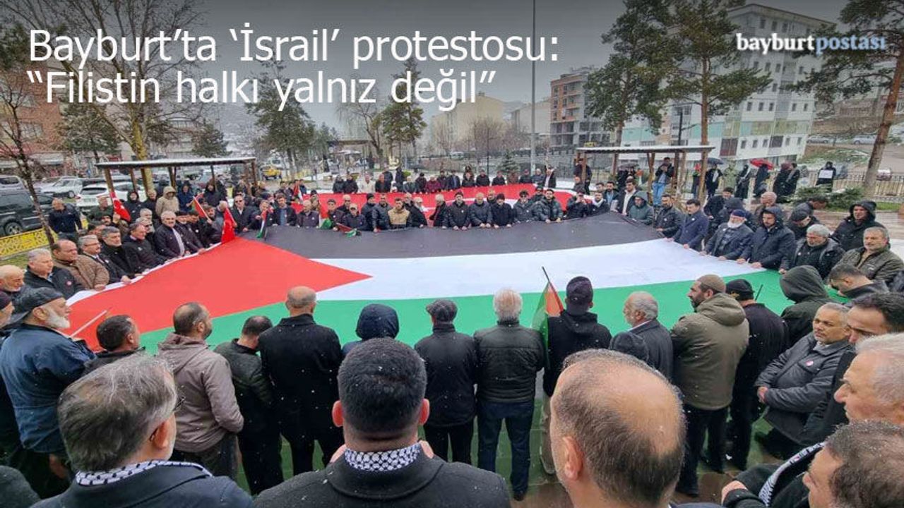 Bayburt Postası - Yusufiye Camii bahçesinde gerçekleştirilen açıklamada, İsrail’in uluslararası hukuku hiçe sayan uygulamalarına tepki gösterilerek, Filistin halkının yalnız olmadığı mesajı verildi.