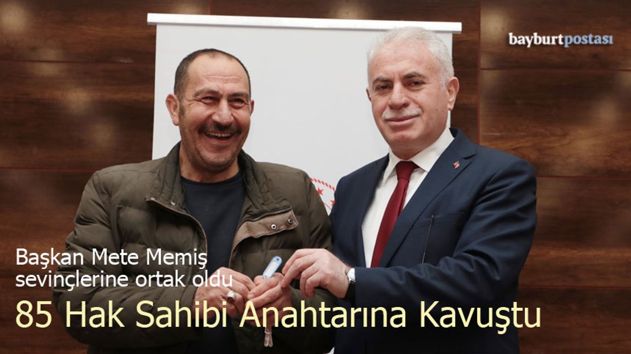 Bayburt Postası - Proje kapsamında konut karşılığı anlaşma sağlayan 107 hak sahibinden 85’i, düzenlenen törenle yeni ve güvenli yuvalarının anahtarlarını teslim aldı.