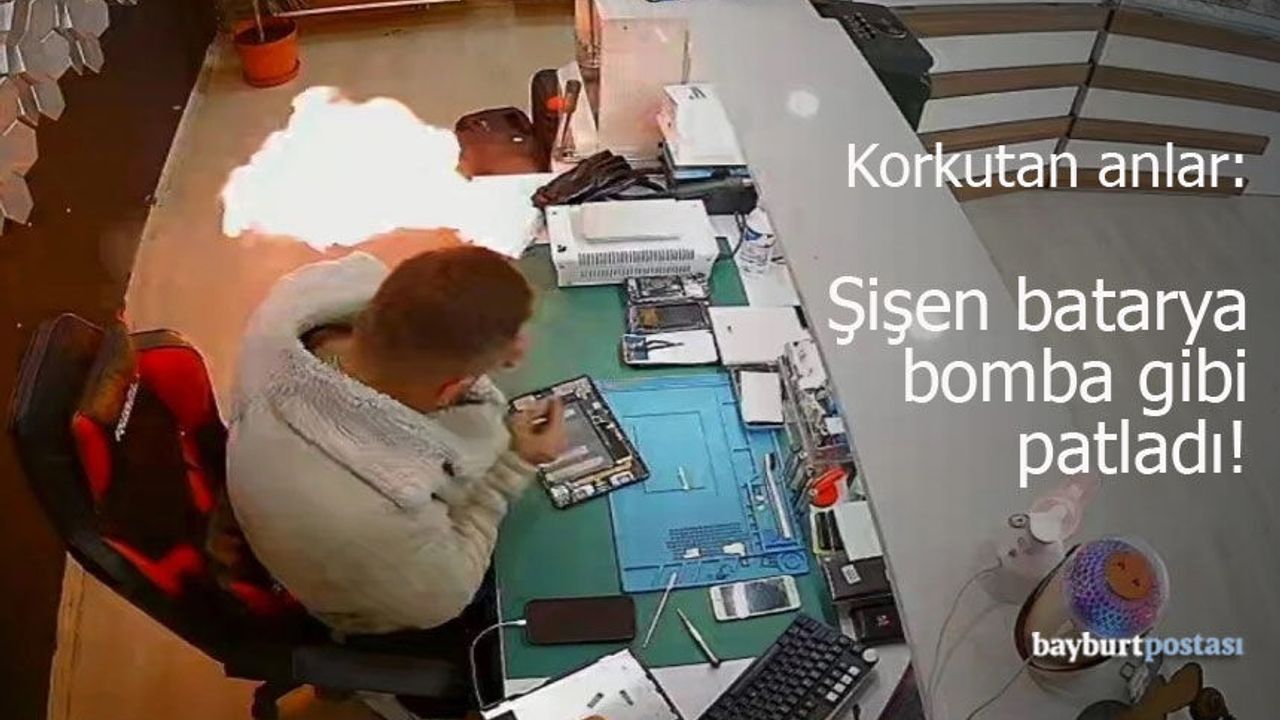 Olay, Bayburt’ta telefon alım-satım ve tamir işleriyle uğraşan İbrahim Heme’nin iş yerinde meydana geldi. Bir müşteri, bataryası aşırı derecede şişmiş olan cep telefonunu tamir edilmesi için Heme’ye teslim etti. Bataryadaki şişkinliğin, telefonun ekranını ve arka kasasını birbirinden ayıracak boyuta ulaştığı görüldü.