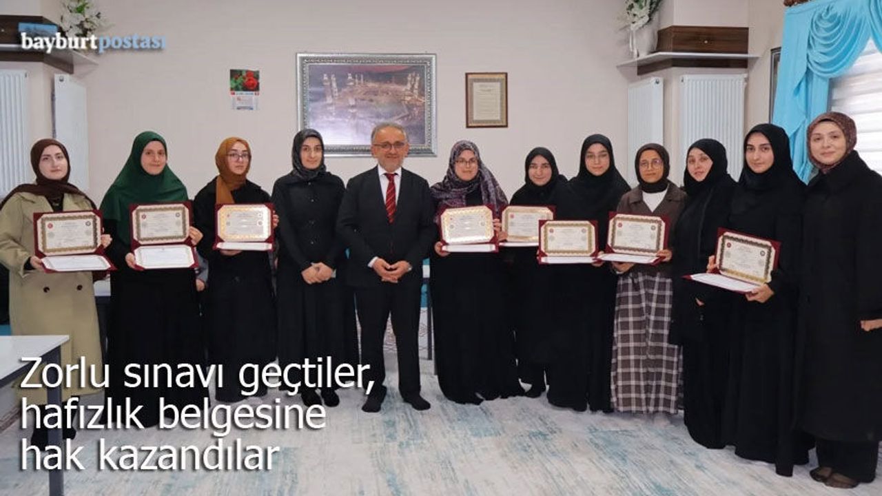 Bayburt Postası - Diyanet İşleri Başkanlığı tarafından gerçekleştirilen hafızlık tespit sınavında başarı gösteren gençler, düzenlenen merasimle belgelerini teslim aldı.