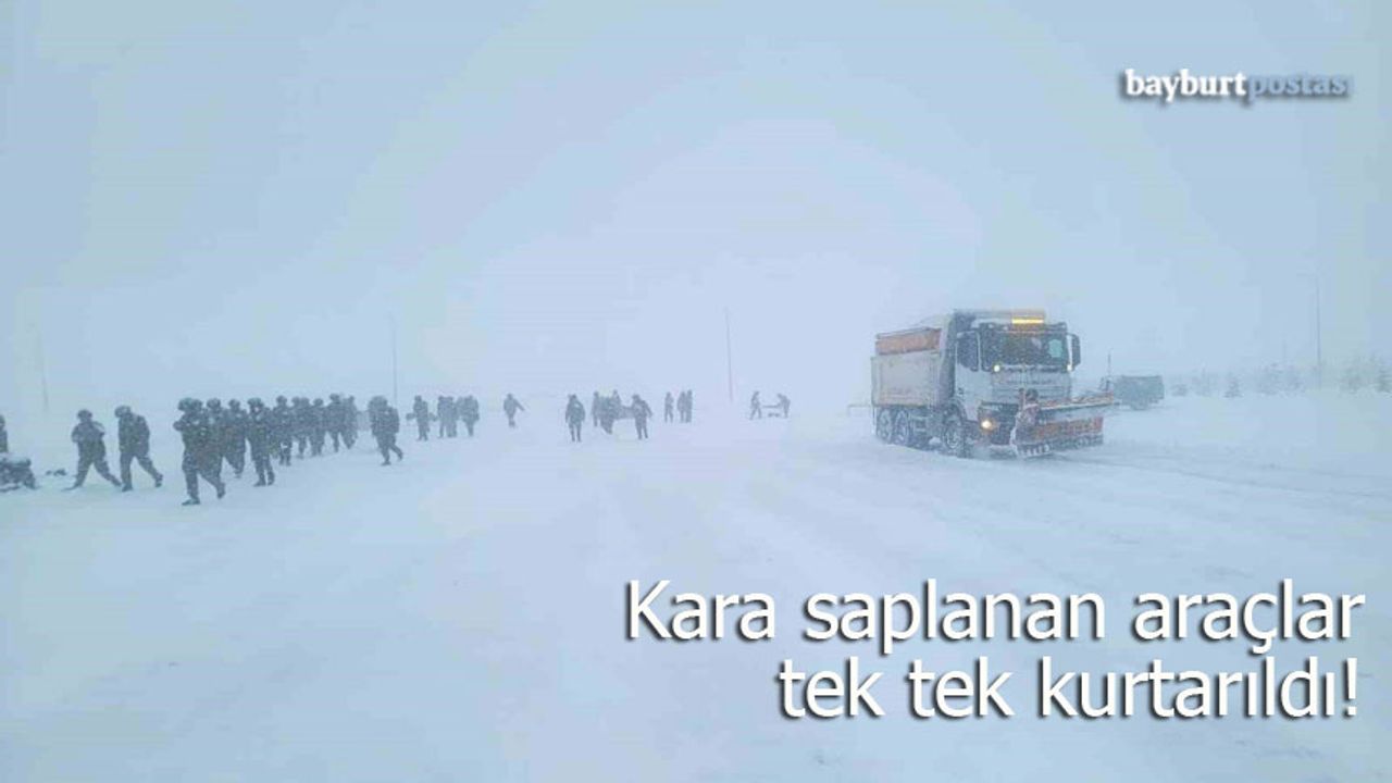 Bayburt Postası - Kar kalınlığının artmasıyla birlikte yollarda mahsur kalan sürücülerin yardımına Bayburt İl Özel İdaresi ekipleri yetişti. İş makineleri ve kar küreme araçlarıyla bölgeye intikal eden ekipler, kara saplanan araçları halat yardımıyla çekerek güvenli alanlara tahliye etti.