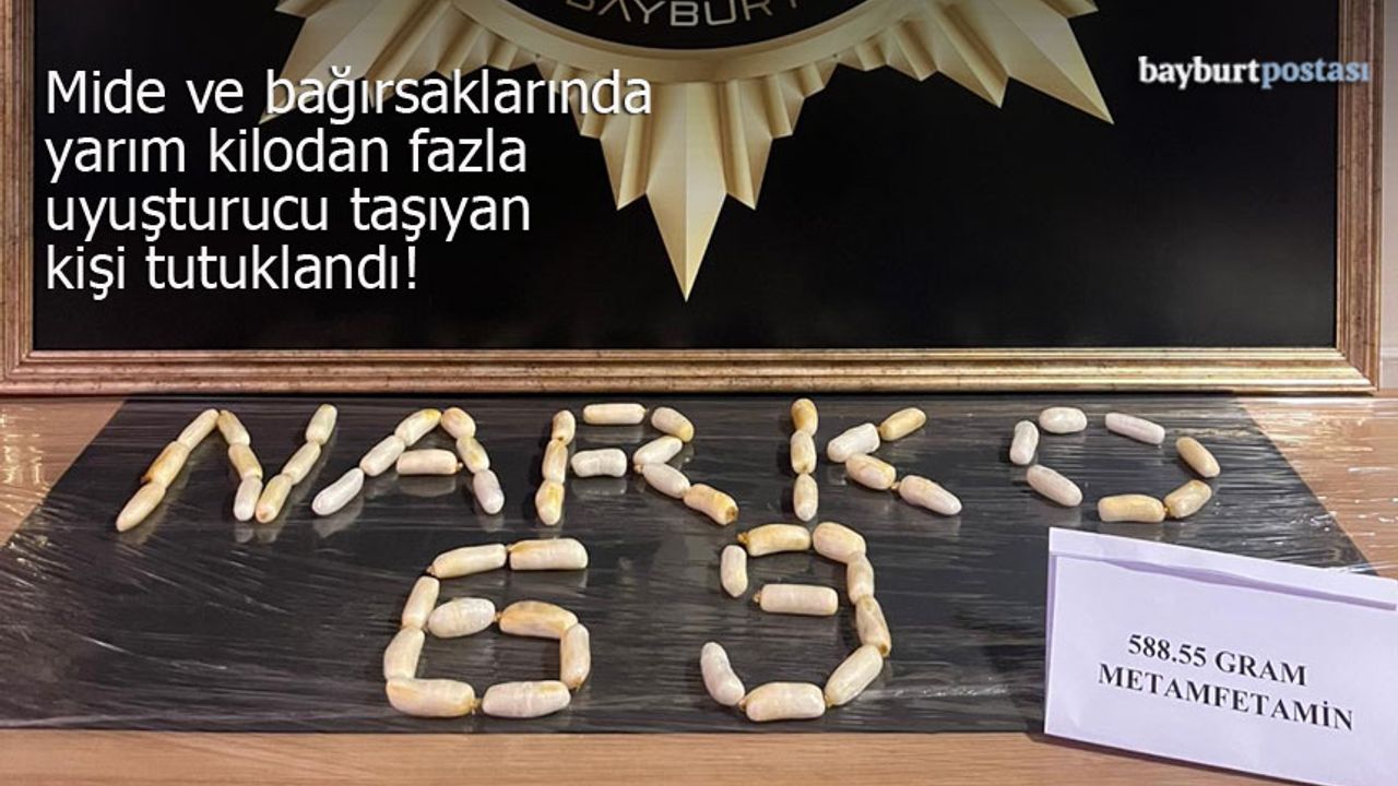 Şüpheli D.A.'nın Bayburt Devlet Hastanesi'nde yapılan iç beden muayenesinde, mide ve bağırsaklarında çok sayıda yabancı madde olduğu görüldü.
