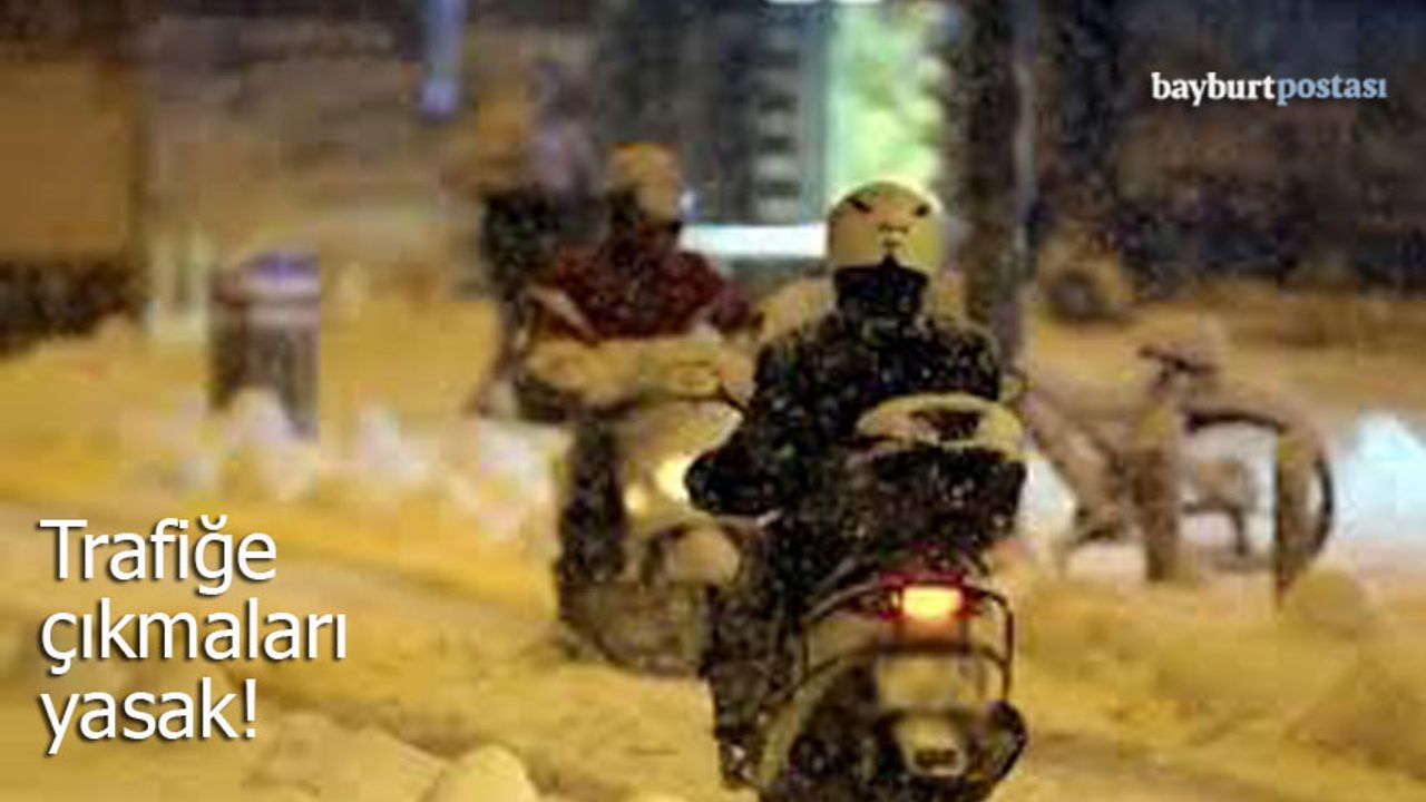 Valilik tarafından yapılan duyuruda, "İlimiz genelinde devam eden olumsuz hava koşulları nedeniyle, buzlanmadan kaynaklı ulaşımda aksamalar trafik seyrini ve vatandaşlarımızın can güvenliğini tehlikeye atmaktadır. Bu sebeplerden dolayı 20 Ocak 2026 Salı günü 1 (bir) gün süreyle Bayburt genelinde motokuryelerin, motosikletlerin ve elektrikli scooterların trafiğe çıkması yasaklanmıştır" ifadelerine yer verildi.
