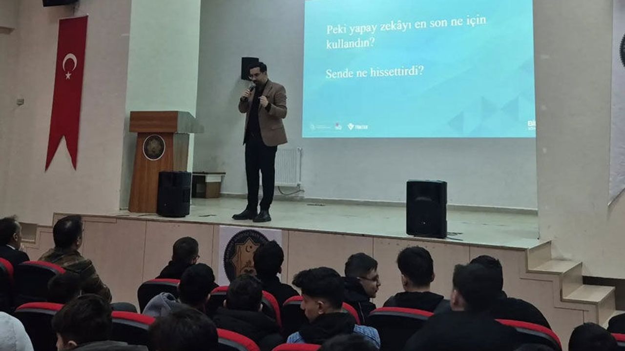 Yapay zekâ uygulamalarının sunduğu imkânların yanı sıra beraberinde getirdiği sorumluluklara da dikkat çekilen eğitimde, öğrencilerin konuya ilişkin farkındalığının artırılması hedeflendi. Programda teknoloji ile etik arasındaki ilişki, anlaşılır örneklerle ele alındı.