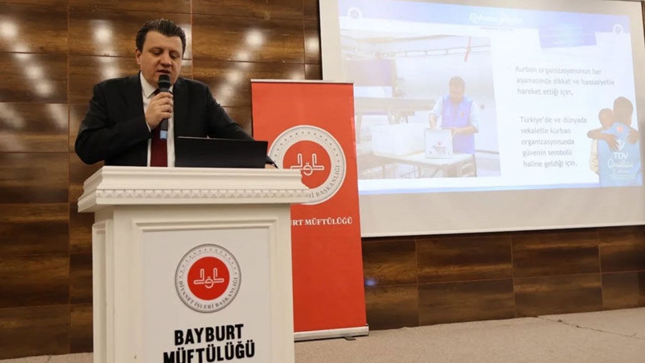 Bayburt Postası - Kur’an-ı Kerim tilavetiyle başlayan programın açılış konuşmasını İl Müftüsü Bayram Danacı yaptı. Toplantıya konuşmacı olarak katılan Diyanet İşleri Başkanlığı Disiplin ve Değerlendirme Daire Başkanı Murat Akdoğan, vekaletle kurban kesim organizasyonunun önemine değinerek, Diyanet İşleri Başkanlığı tarafından yurt içinde ve yurt dışında yürütülen çalışmalar hakkında bilgi aktardı.