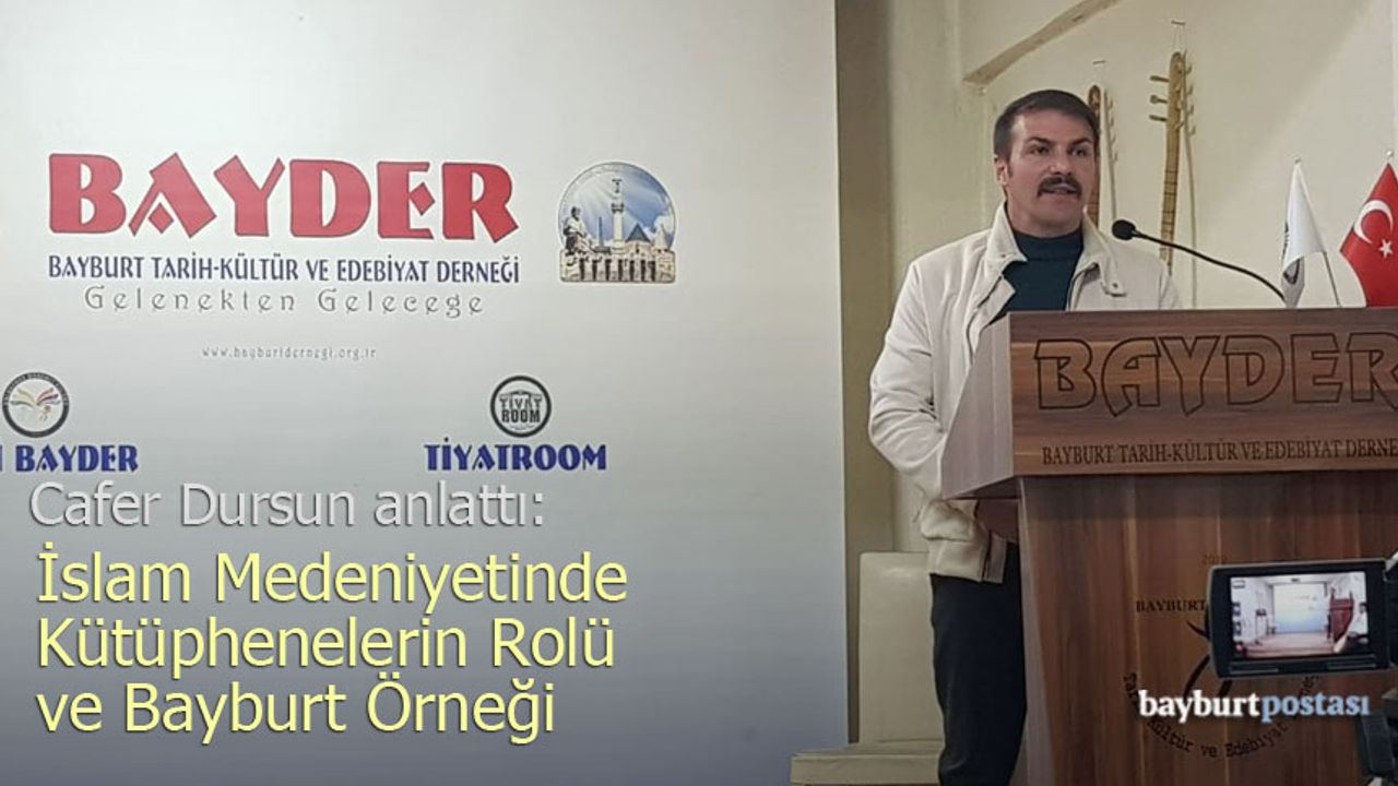Sunumda Bayburt'taki kütüphane kültürüne de değinildi. Yakûtiye Külliyesi ve Bayburt Rüşdiyesi kütüphanelerinin şehir hafızasındaki önemi anlatılırken, Gümüşhanevi Hazretleri tarafından kurulan Ziyâiye Kütüphanesi (1871) koleksiyonunun savaşta yağmalanarak Tiflis ve Leningrad’a götürüldüğü bilgisi paylaşıldı. Dursun, bu durumu da bir milletin hafızasını kesme girişimi olarak yineledi.
