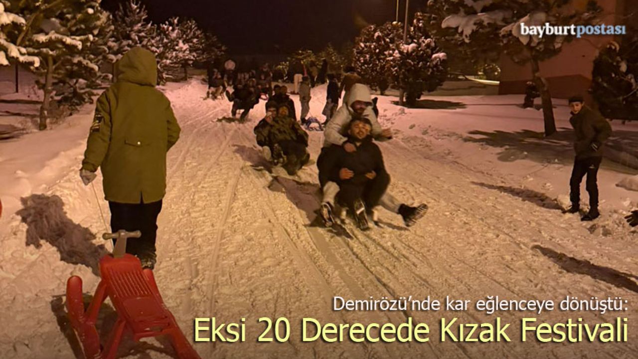 Demirözü Belediyesi tarafından Eski TOKİ Yolu mevkiinde organize edilen etkinlikte, Bayburtlu vatandaşlar dik yokuşlardan kızaklarla kayarak karın tadını çıkardı. Festival alanında bir araya gelen kalabalık, eksi 20 derece soğukta davul zurna eşliğinde halaylar çekerek ısındı.
