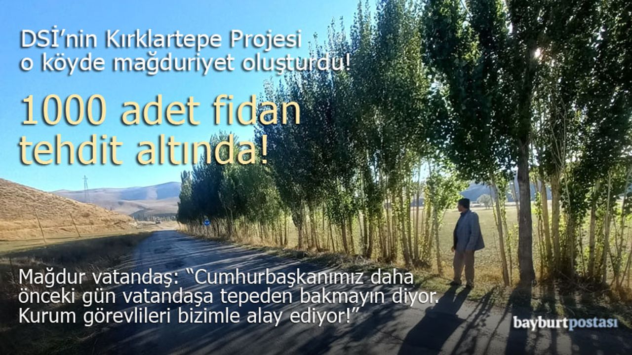 Bayburt Postası - Aksaçlı köyü sakinlerinden Kadir Kekeç, sulama boru hattının yolun sağ tarafından kendi tarlasına kadar geldiğini, ancak tarlasının başlangıcında asfaltın altından geçerek kendi tarafına geçtiğini ve bu durumun bine yakın fidanının katledilmesine yol açacağını belirtti. Köy sakinlerinden Salih Kekeç de, Kırklartepe Barajı sulama boru hattı ile ilgili olarak fidanlığının katledilmesi ve fidanlarının hiçe sayılmasının yetkililere iletildiğini ifade etti.