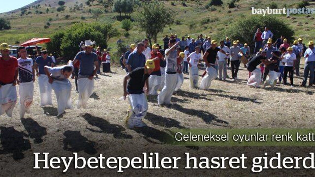 Bayburt Postası - Heybetepe Köyü'nde şenlik heyecanı yaşandı. Heybetepe Köyü Yardımlaşma ve Dayanışma Derneği'nin düzenlediği şenlikte yöresel halk oyunları ve futbol müsabakasının yanı sıra geleneksel oyunlar Çuval ve Yumurta Yarışı da yapıldı. Çekişmeli geçen yarışlarda birinci olanlara çeşitli ödüller verildi.