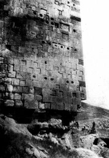 Platonun hemen ortasında yeterince yüksek kayalıkların üzerinde düz denilebilecek bir tepe var. Dış görünümü kırmızıya benzeyen yumrulu toprakla yükselen bu tepenin dağın diğer bölgelerinden hiçbir farkı yok. Tepe üzerinin tamamında çok iyi korunmuş taş bina yıkıntısı bulunuyor. Güney-doğu köşesi altında kuyuya benzer iki çukur var. Her ikisi de kaya içerisinde düzgün bir şekilde oyulmuş bu kuyulardan küçüğü, büyüğüne oranla biraz daha köşeli ve şekilsiz duruyor. İki kuyudan büyük olanı, güney duvarının altında bulunuyor. Doğuya kalan tarafının çapı 3,4 metreye denk gelirken derinliği ise yaklaşık olarak 1,5 metre. Bu çukurun içerisi toprakla dolmuş olduğundan kazı çalışması yapılmadan buranın gerçek derinliğinin ne kadar olduğunu anlamak mümkün gibi görünmüyor. İkinci kuyu ise doğuya doğru bakıyor, çapı 2 metre derinliği ise birincinin derinliğine yakın bir mesafede.