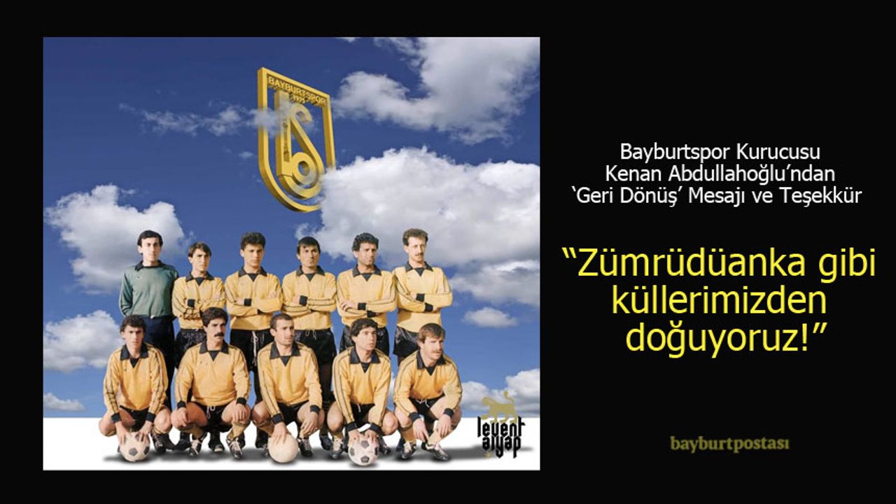 Abdullahoğlu, "Bayburtspor'un varlığı, renklerinin, kuruluş tarihinin, hatta var oluşunun çalınmış ve inkâr edilmiş olmasına karşın bugün her olumsuzluğu altederek bir 'zümrüdüanka kuşu' gibi küllerinden doğuyor" ifadelerini kullandı.