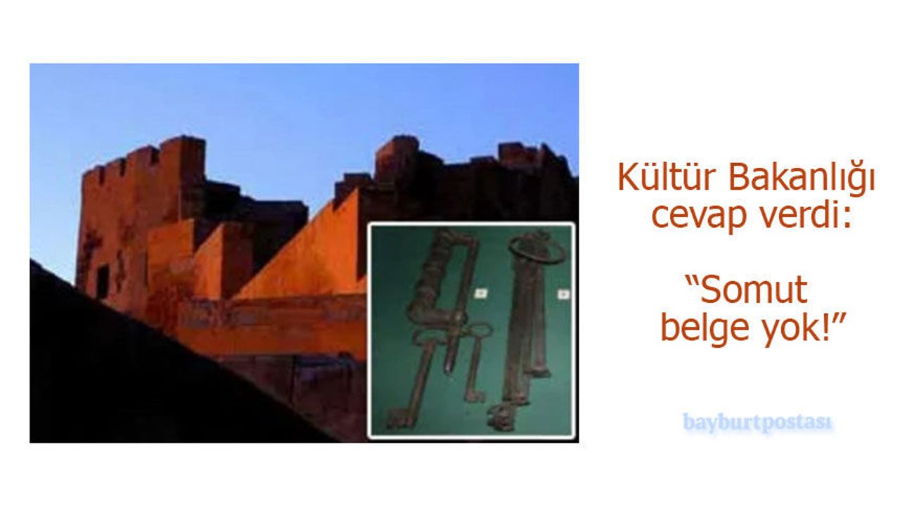 Bayburt Postası - Bayburt Müze Müdürlüğünce kurum arşivinde yapılan incelemede kale anahtarıyla ilgili herhangi bir bilgi ve belgeye rastlanmadığı, konunun değerlendirilmek üzere Kültür ve Turizm Bakanlığı Kültür Varlıkları ve Müzeler Genel Müdürlüğüne iletildiği belirtildi.