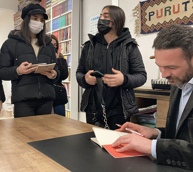 Yoğun ilgi gören imza gününde okurları ile buluşan Onur Şahin, onlarla sohbet ederek, şiir hakkındaki görüşlerini sordu, önerilerde bulundu.