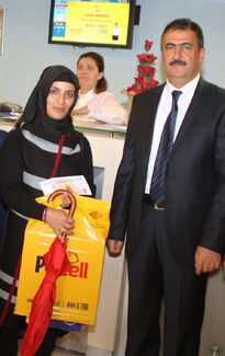 Oruç ve PTT Merkez Müdürü Turgay Çepni, açıklamanın ardından, 175'inci müşteriye çeşitli hediyeler verdi. AA