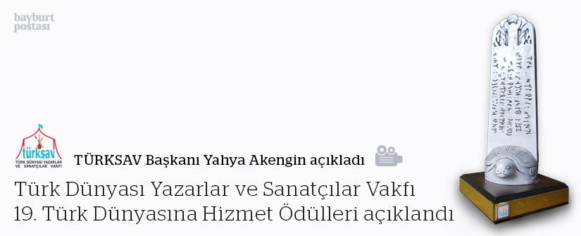 Bayburt Postası - Türk Dünyası Yazarlar ve Sanatçılar Vakfı (TÜRKSAV), "19. Uluslararası Türk Dünyasına Hizmet Ödülleri"nin sahiplerini açıkladı.