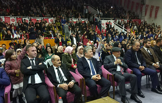 Bayburt Postası - Kapalı Spor Salonu’nun tıklım tıklım dolduğu gecede ülkücü sanatçılar Ali Kınık, Atilla Yılmaz, Ahmet Öngel, Gürbüz Gözüm ve Burçe Bozkurt sahne aldı.