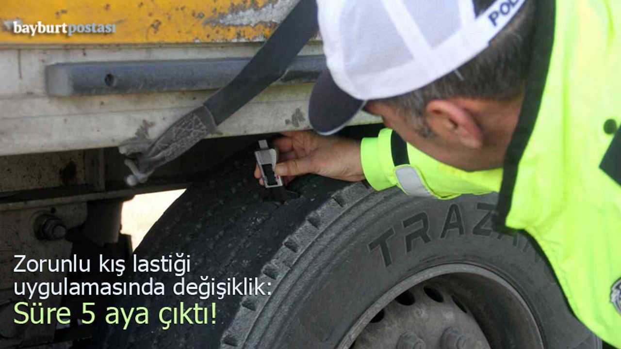 Daha önce 1 Aralık-1 Nisan tarihleri arasında zorunlu olan kış lastiği uygulamasının süresi bir ay daha uzatıldı. Yeni düzenlemeye göre, kış lastiği kullanma zorunluluğu artık 15 Kasım'da başlayıp 15 Nisan'da sona erecek. Böylece, dört ay olan zorunluluk süresi beş aya çıkarılmış oldu.